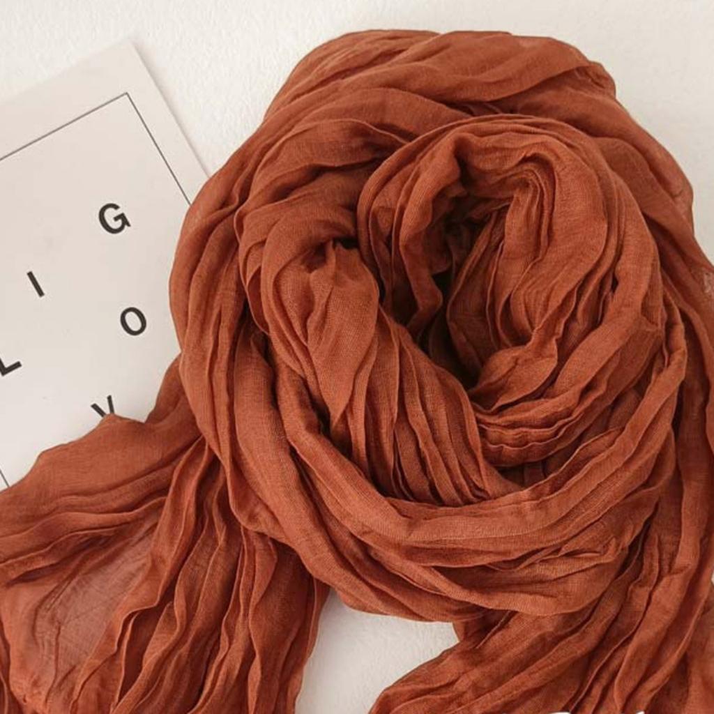 Solid-color Cotton And Linen Scarf - Vintage Fall And Winter , Pleated Silk Scarf