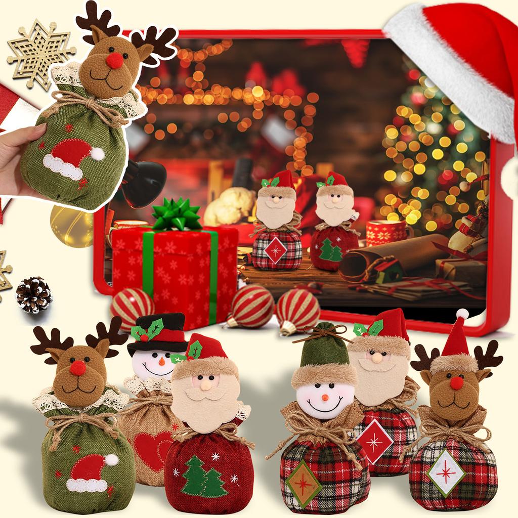 Linen Bags With Drawstring 3D Plush Santa Snowman- Christmas Candy Bags Gift Bags Bags Santa Sack For Kids Party Favors