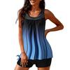 Features: This women's swimwear ensemble includes a tank top with straps, an open back design, skirt-style bottom, boxer briefs cut, and removable padding for added convenience and support.
