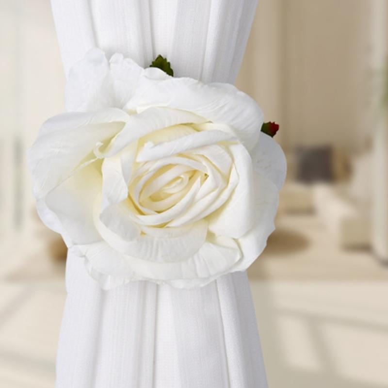 Set Of 2 Decorative Rose Design Curtain Clips Holdbacks Polyester Fabric
