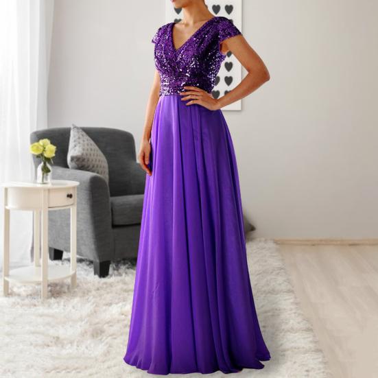 Sequins stitching dress with deep v-neck design can show the graceful curve of your neck, and A-Line version design enhances your elegant and charming.