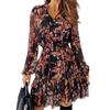 A wide range of features are included by this dress such as lantern sleeves, flower print, big hem, V neck and see-through chiffon designs, making the dress so trendy and fabulous.