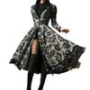 Black floral print design is good to show your fashionable and retro charm. Lapel and pleated shoulder dress is more and chic.