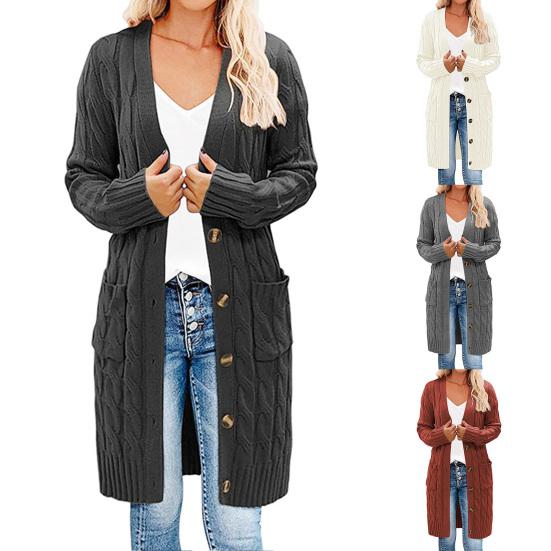 Featuring buttons closure design, women sweater cardigan is convenient for you to wear and take off. Designed with solid color, women twist cardigan is casual and simple.