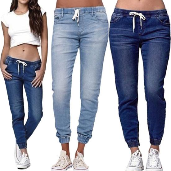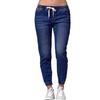 Women Solid Color Drawstring Ankle Tie Slim Stretchy Jeans Plus Size Denim Pants