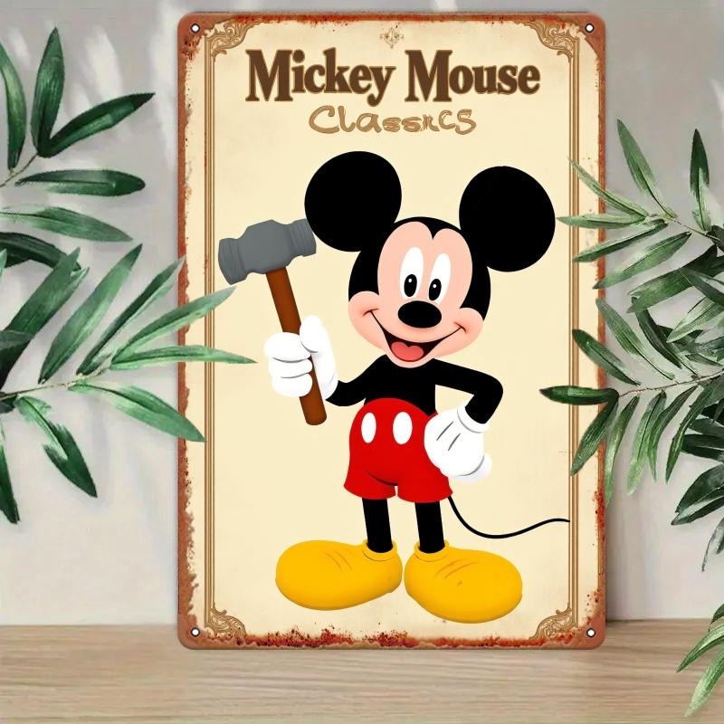 Vintage Mickey Mouse with Hammer Tin Sign - 5.08x20.32 Cm Wall Art for Home Studio, Living Room & Game Room | Classic Cartoon De