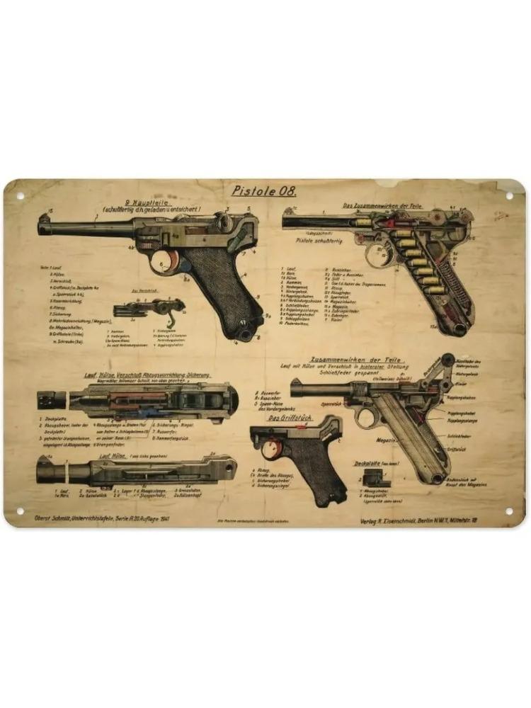 WW2 Luger Pistol 08 Metal Wall Sculpture 12"|History Theme,Halloween&Christmas Gift,Collector/Office/Living Room Decor