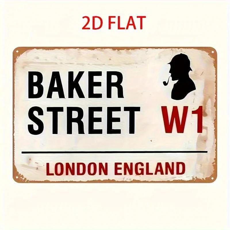 Vintage Baker Street W2 Metal Sign - Distressed Retro London Wall Art with Silhouette, Durable Iron Construction for Indoor/O