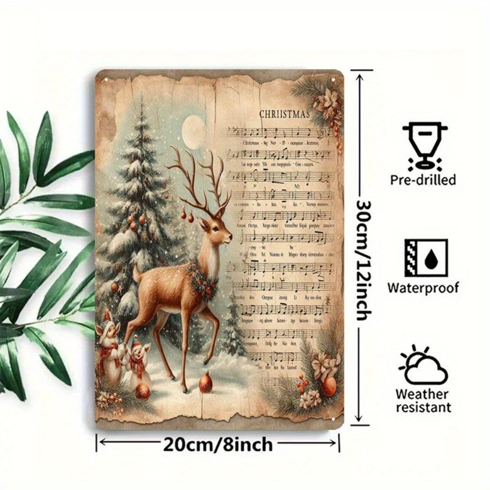 Vintage Christmas Music Sheet Wall Decor: 8x12in Iron Deer & Snowflake Sign, Easy To Hang