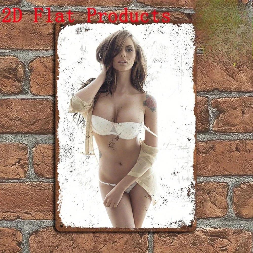 BRAHMIHITA Retro Girl Bikini Metal Tin Sign 12x8 Inch - Pre-Drilled Vintage Wall Decor for Man Cave Bar Bathroom Living Room