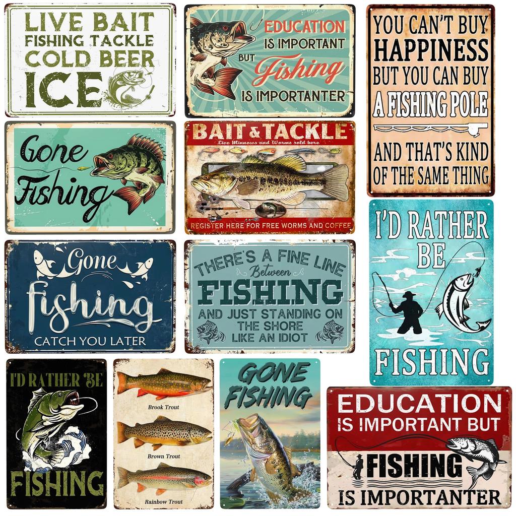 1pc Vintage Fishing Metal Signs Fish Cabin Lake House Sign Gifts for Fisherman Fishing Wall Art Funny Decor for Home 8x12 Inc