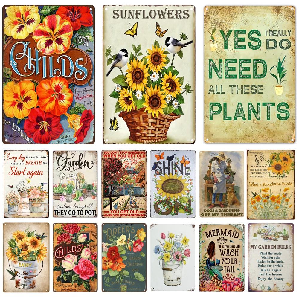 Welcome To Our Garden Metal Tin Signs, Dirty Hoe Wall Art, Sunflower Retro Poster for Home, Yard, Plants Decor, Garden Rule S
