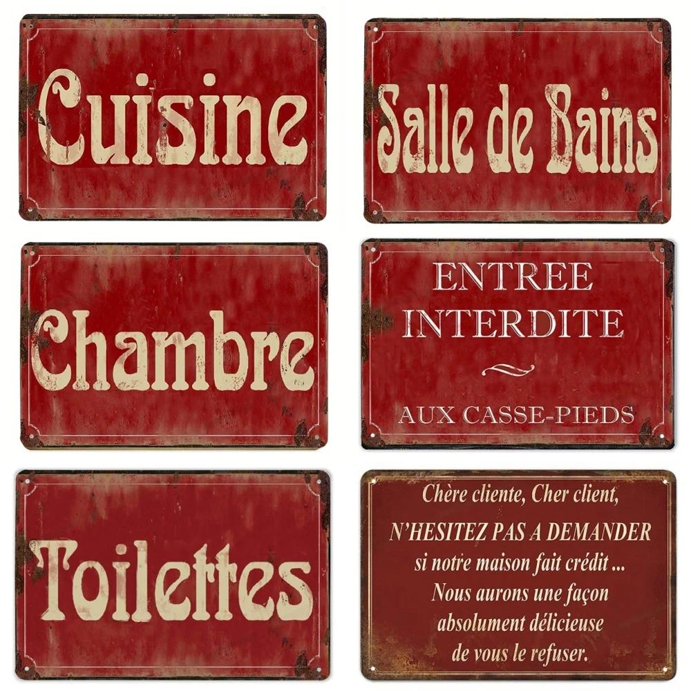 French Vintage Metal CUISINE Signs Decor Posters Plaque Retro Tin Sign Bar Pub Club Wall Decor Painting Decorative Plate