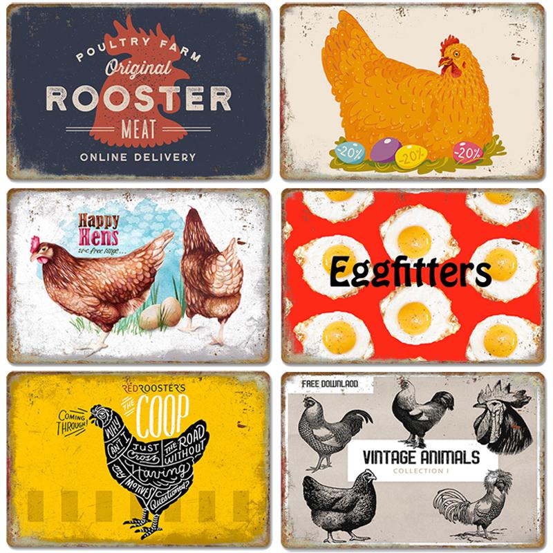 Chickens Tin Signs Metal Vintage Poster Rooster Hens Eggs Retro Plaque Wall Stickers Painting for Farm Door Home Decor