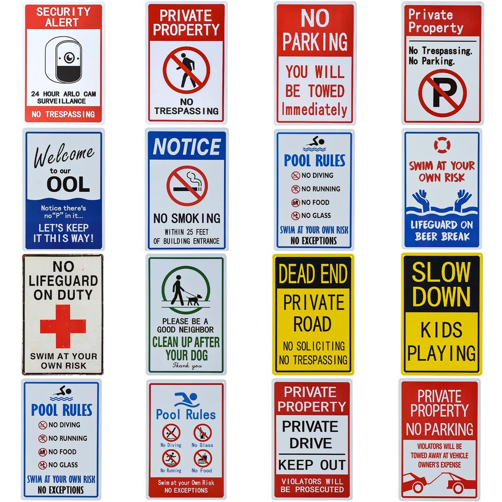 Warning Metal Tin Sign No Parking Sign Private Property No Trespassing Poster 24-Hour Monitoring No Parking Swimming Warning