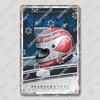 Vintage F Racer Helmet Metal Tin Sign Wall Art Decor Sport Car Helmets Poster Plaque for Garage Racing Club Bar Pub Home