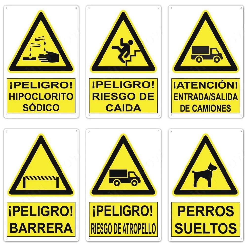 Spanish Warning Sign Danger Metal Sign for Street Yard Bar Workshop Decor Yellow Waterproof Caution Signs Outdoor Indoor