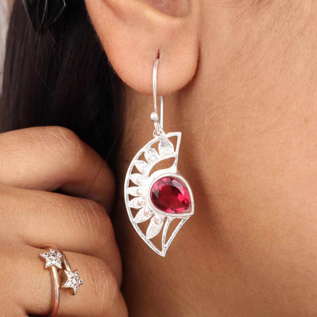 Natural Pink Rubellite Gemstone 925 Sterling Silver Women Jewelry Pretty Earrings 1.5" CE-26-5
