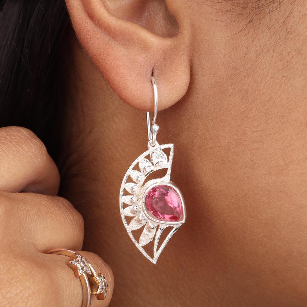 Pink Tourmaline Gemstone 925 Sterling Silver Women Jewelry Partywear Earring 1.5" For Gift CE-26-9