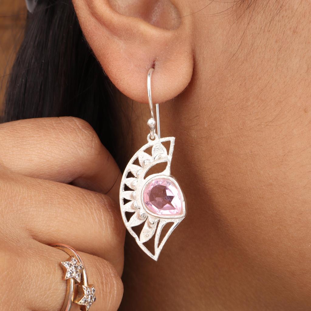 Natural Pink Morganite Gemstone 925 Sterling Silver Women Jewelry Pretty Earring 1.5" CE-26-13