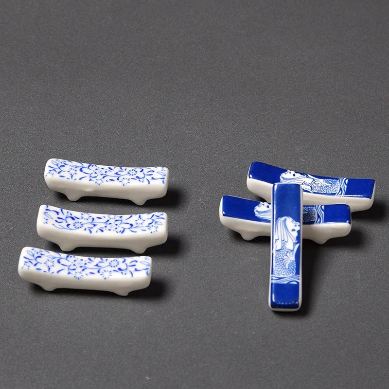 Pure Hand-made Japanese Ceramic Chopsticks Stand Blue and White Porcelain Pattern Chopsticks Hold Table Furniture Crafts