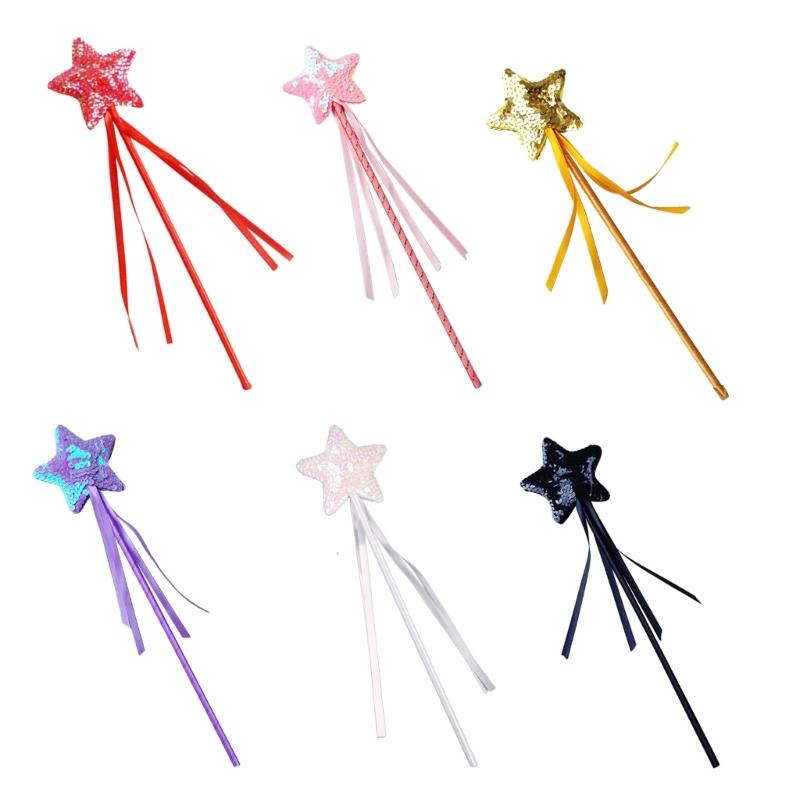 Star Sequins Magic Stick Princess Cosplay Props Little Girl Character Costume Accessory for Children Girl Kindergarten