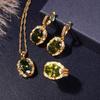 Elegant And Sparkling Necklace Bracelet Ring And Earrings Set In Retro Olive Green Zirconia Gold-Plated Jewelry Set