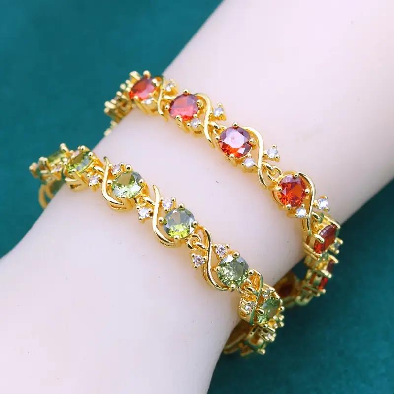 Elegant Vintage-Inspired Golden Plated Bracelet With Olive Green Zirconia For Women Jewelry, Ideal For Valentine'S Day