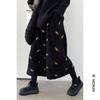 Vintage Brown Velvet A-Line Midi Dress Autumn Floral Embroidery Korean Style Over-Knee Long Dress