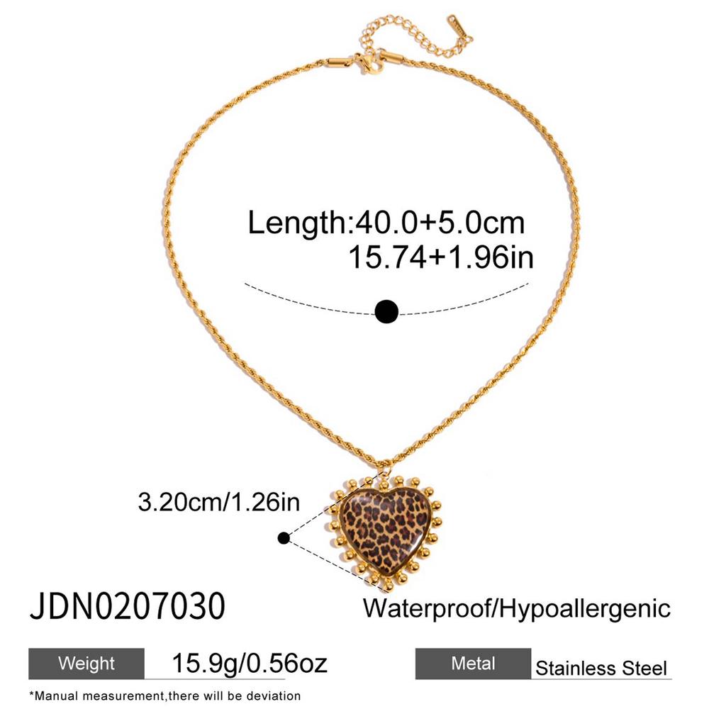 Youthway Leopard Print Heart Pendant Necklace For Women Gold Plated Stainless Steel Necklace Simple Fashion Jewelry Gift
