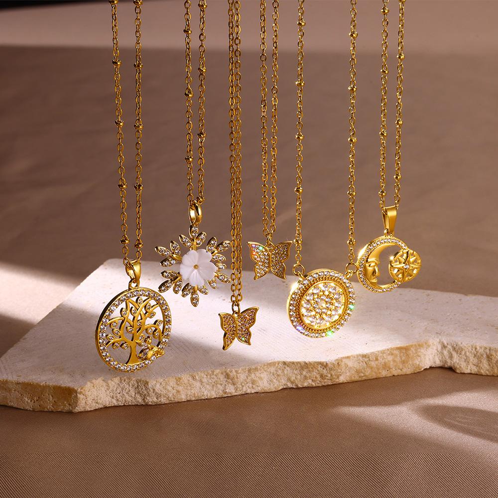 Zirconia Butterfly Pendant Necklaces For Women Snowflake Charm Necklace Trend New Aesthetic Stainless Steel Jewelry Collar