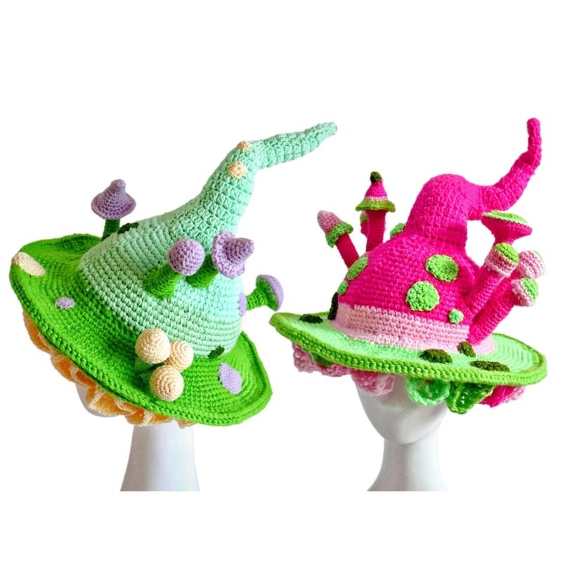 Halloween Knitted Fairy Hat with Mushroom Decor Wizard Hat Men Women Party Headgear Cosplay Hat Festivals Party Props