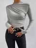 Summer Solid Color Crew Neck Slim Fit Cami Top with Pleated Design Women's Long Sleeve Shirt