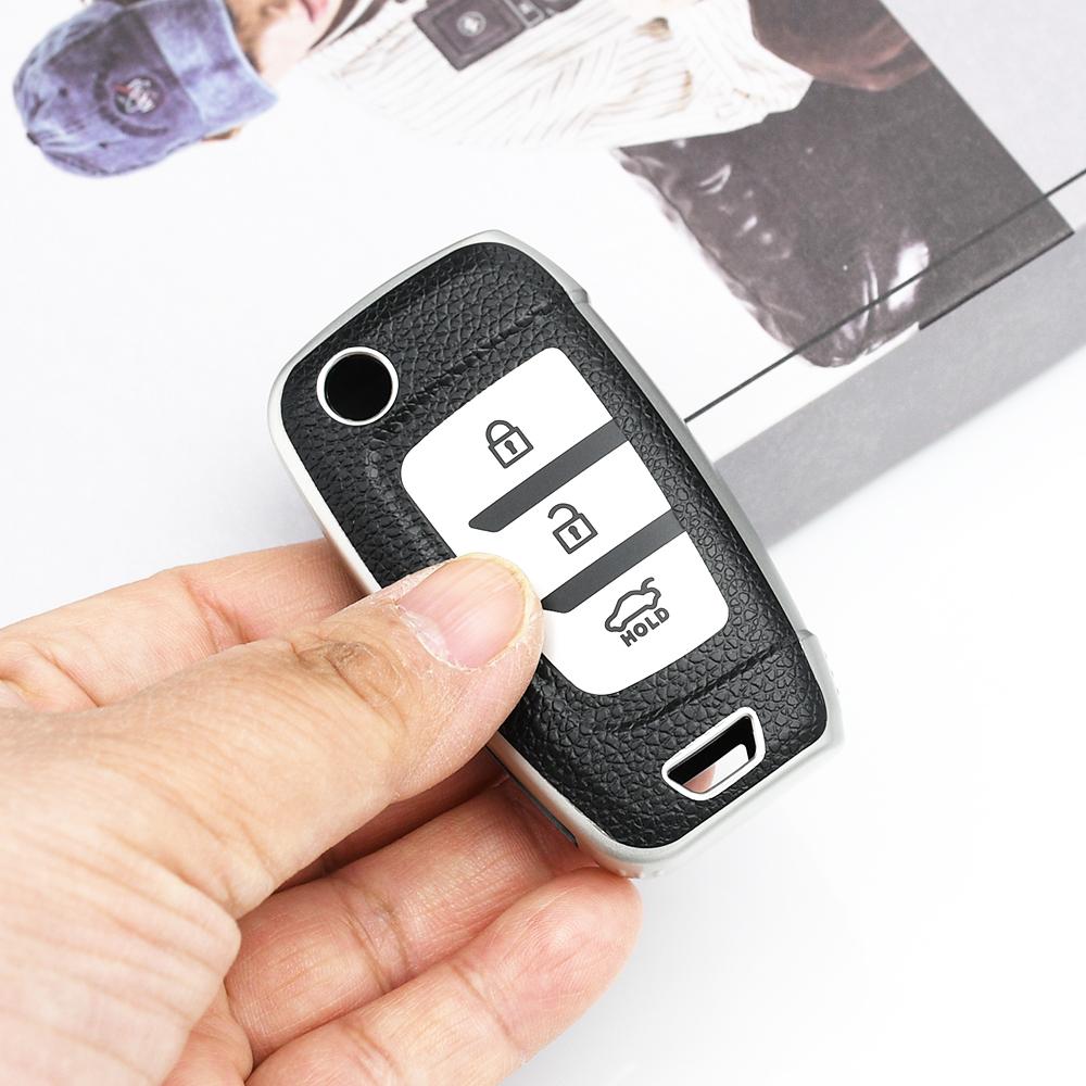 Shell Keyless For Hyundai I30 I35 I40 KONA Genesis Azera Elantra Solaris Tucson Santa Fe TPU Leather Car Folding Key Case Cover Holder