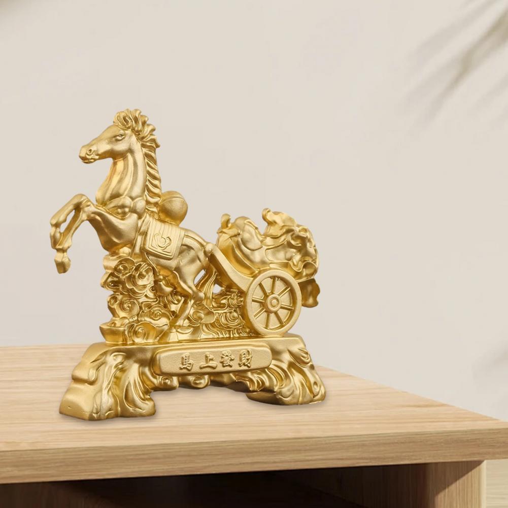 Horse Figurine Decor Golden Finish Horse Ornament Resin Zodiac Horse Figurine Strength Success Sculpture for Home Office Decor