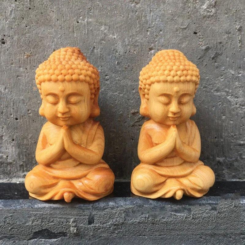 Buddha Statue Desktop Ornament,Cliff Cypress Wood Carving Cute Tathagata Small Buddha Figurine Crafts,For Home Decoration Gift