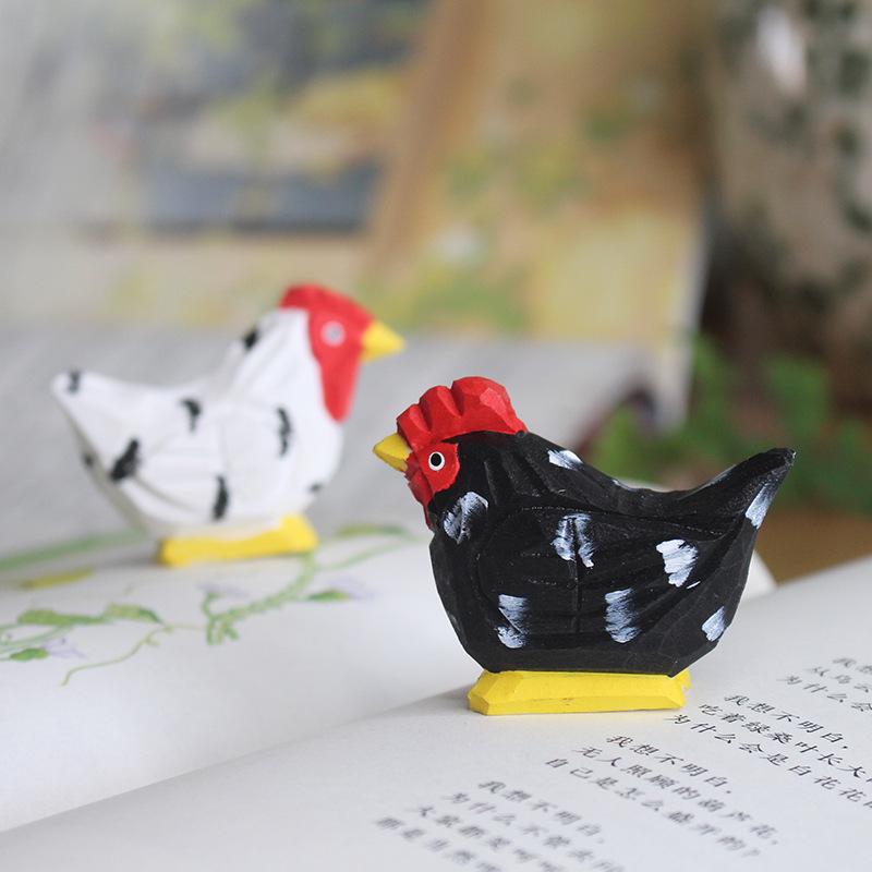 Wooden Small Reed Flower Rooster Figurine Cute Miniature Zodiac Chicken Figures Book Nook Ornament Cartoon Animal Wooden Gift