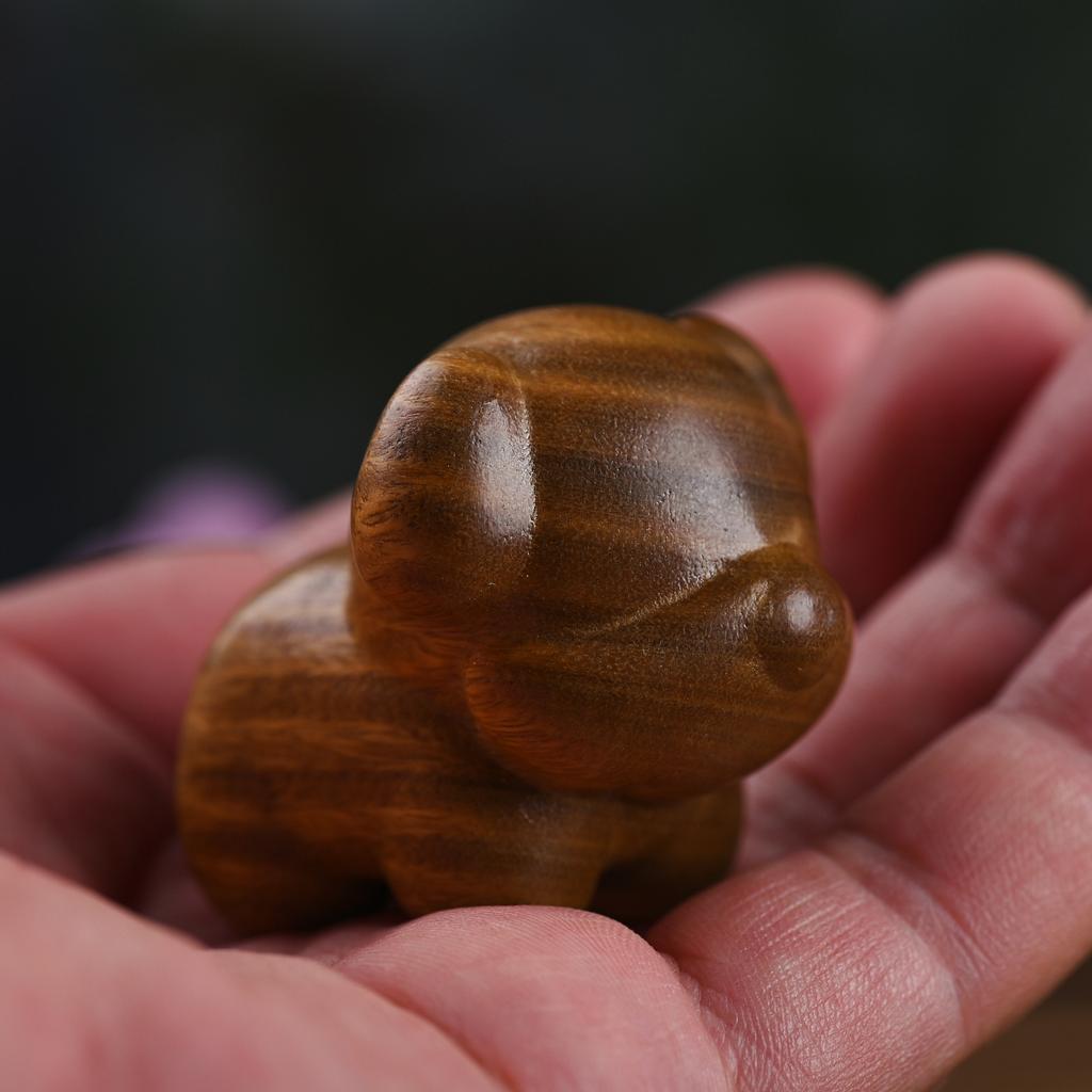 Green Sandalwood Little Puppy - Healing Cute Cartoon Pet, Creative Home Wooden Carving Ornament, Handheld Art Piece