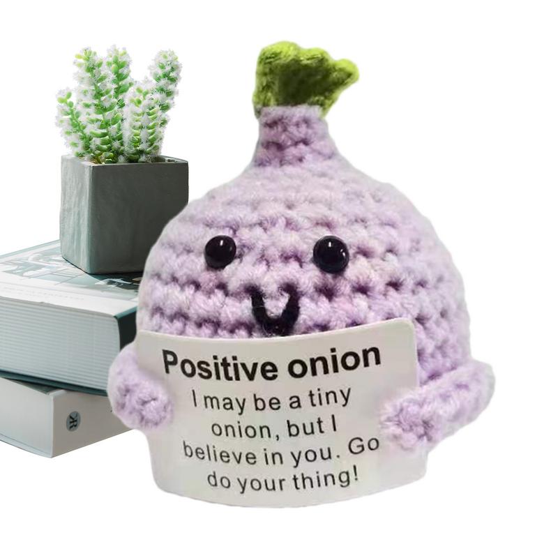 Positive Crocheted Crocheted Toy with Encouraging Card for Emotional Support Koala Rabbit Mouse Onion Blueberry Gift for Kids