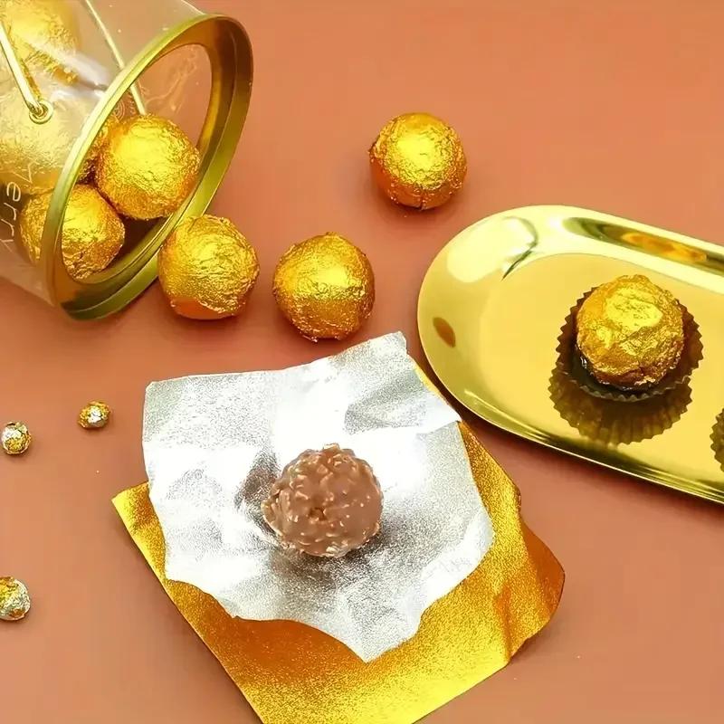 100pcs 10cm Gold Aluminium Foil Wrapper Paper Wedding Chocolate Paper Candy Wrapping Paper Sheets Wedding Party Candy Packaging