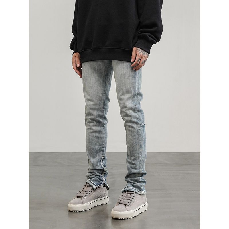 European and American High Street Style Basic Side Open Zip-up Feet Jeans Kanye Same As Slim Fit Stretch Slimming Trousers for Men