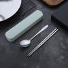 2/3Pcs/Set Stainless Steel Portable Tableware Set - Durable and Collectible Fork, Spoon, Chopsticks with Box Perfect for Outdoor