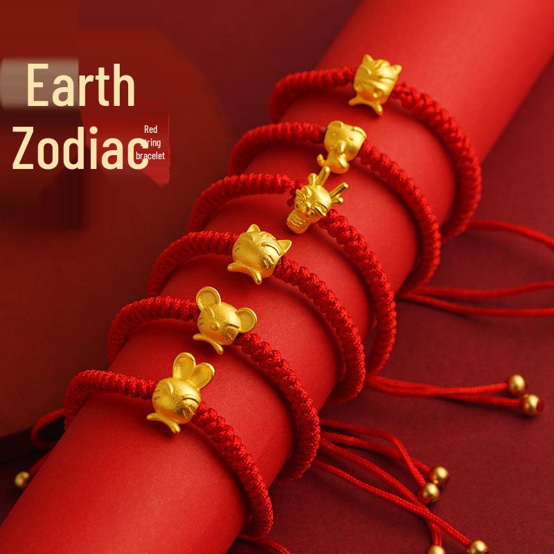 Long-lasting Sand Gold Zodiac Red Rope Bracelet - Chinese Style Couples & Besties Dragon Year Accessory