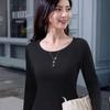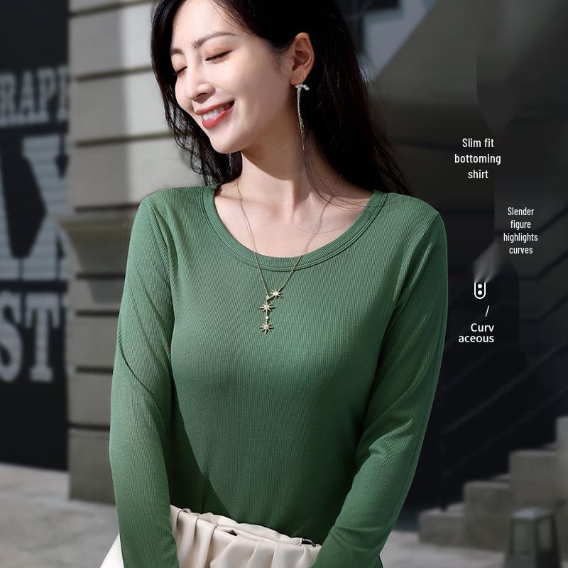Embrace the elegance of the season with this stylish women's T-shirt. Crafted from high-quality modal fabric, it offers a soft and comfortable fit perfect for everyday wear. The slim-fit design enhances your silhouette, while the long sleeves add a touch of sophistication. Featuring a classic round neckline and a solid pattern, this top is versatile and easy to pair with any outfit, making it an essential addition to your autumn wardrobe.