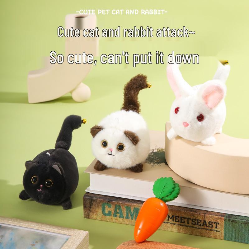 Wagging Tail Cat & White Rabbit Plush Toy Pendant Keychain for Couples