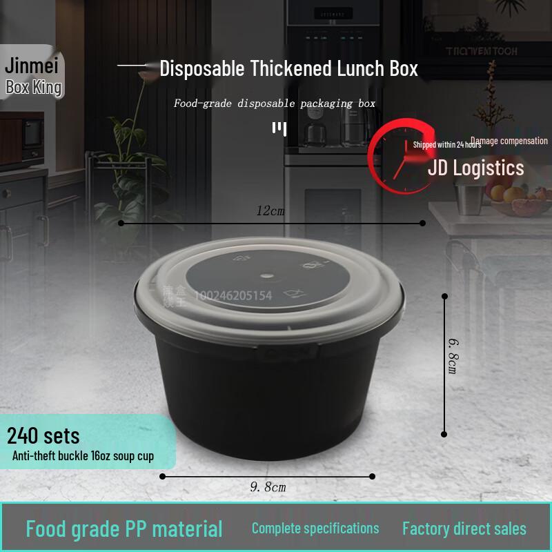 Disposable 500ml Black Round Soup Containers with Lids