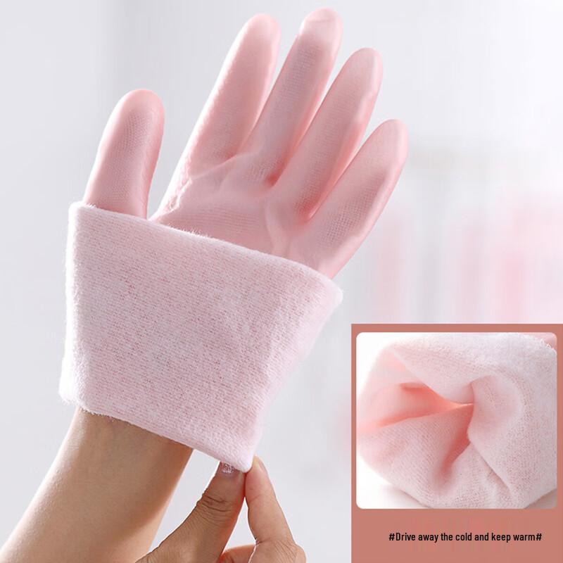 Warm Fleece-Lined Rubber Household Gloves with Extended Cuffs