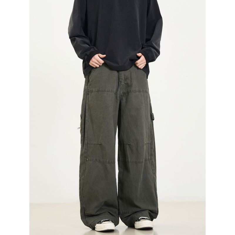 Kisko Designed American Retro Washed Wide-Leg Drape Work Pants for Men and Women, Loose Straight-Leg Baggy Casual Trousers