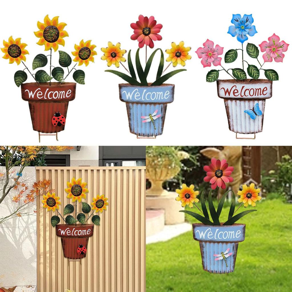 Flower Pot Garden Stake 2D Decor Sturdy Decoration for Lawn Landscape Patio