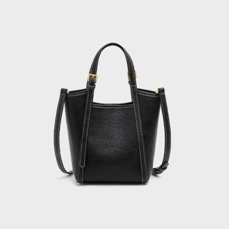 2025 New Black Leather Bucket Bag Autumn Winter Handheld Basket Commuter Crossbody Bag Niche High-End Women's Bag